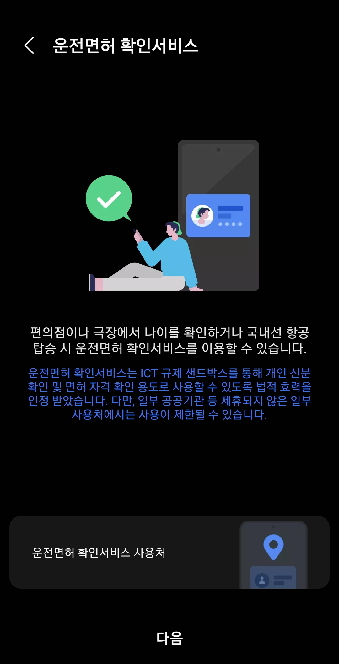 앞서 말씀드린 것과 같이 삼성페이에 등록된 운전면허 확인 서비스를 활용하여 실물 신분증 없이 운전 자격이나 성인 여부를 간편하게 증명할 수 있다는 것에 아주 큰 의의가 있는데요. 이렇듯 삼성페이 운전면허 확인서비스는 과학기술정보통신부의 ICT 규제 샌드박스를 통해 실물 면허증과 동일한 법적 효력 인정을 받았으며 이동통신사 PASS 앱과도 제휴되어 제공되는 서비스입니다.
